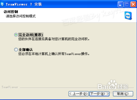 6. 最后一步中同样很重要,要选择第一项了“完全访问”,再单击“下一步”继续: